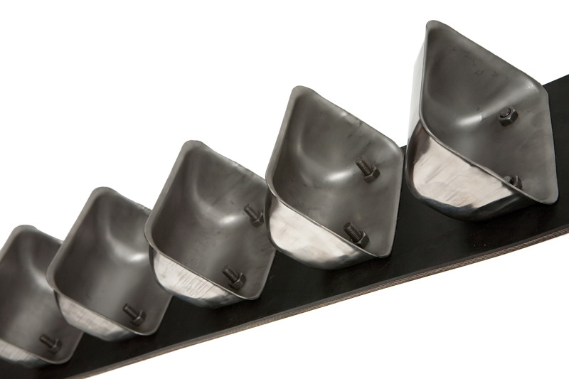 Приводной барабан начинает вращаться после включения привода. Он приводит в движение надетую на него ленту с ковшами. Груз, находящееся снизу, поступает в башмак, далее – в ковши на ленте. Материал находится там, пока поднимется вверх по секциям к головке. В верхней части элеватора, лента огибает барабан, ковши поворачиваются. Находящееся в них груз выбрасывается в воронку и выходит из нории