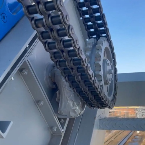 Чудесный экземпляр! Длина конвейера 23 метра. Стоит на самом ответственном участке, где поломки и остановки запрещены. Кстати, вместе с ним поставили и второй - 44-метровый. Стоит рядом. Тоже импортозамещение.